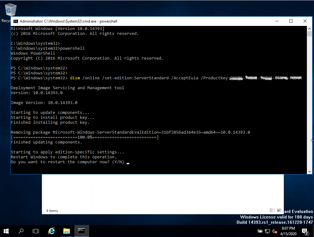 Dism /Online /Set-Edition:ServerStandard /AcceptEula /ProductKey:XXXXX-XXXXX-XXXXX-XXXXX-XXXXX